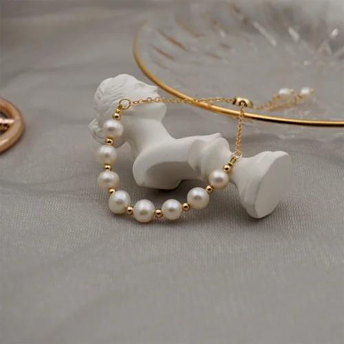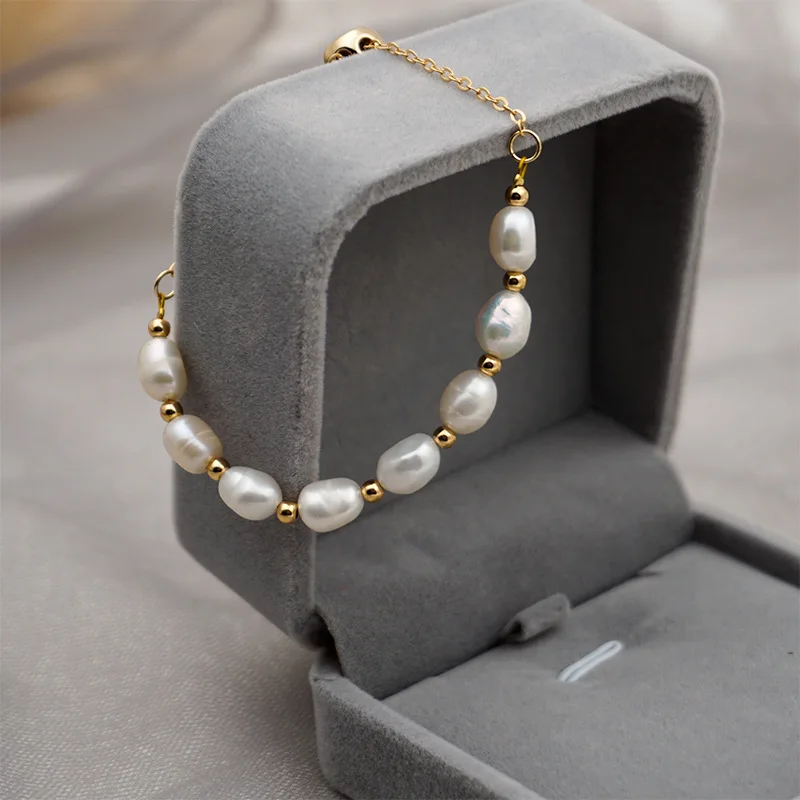 Product Name: Women’s High Quality Stainless Steel 14K Gold Plated Adjustable Women’s Chain Bracelet Natural Pearl Baroque Beaded