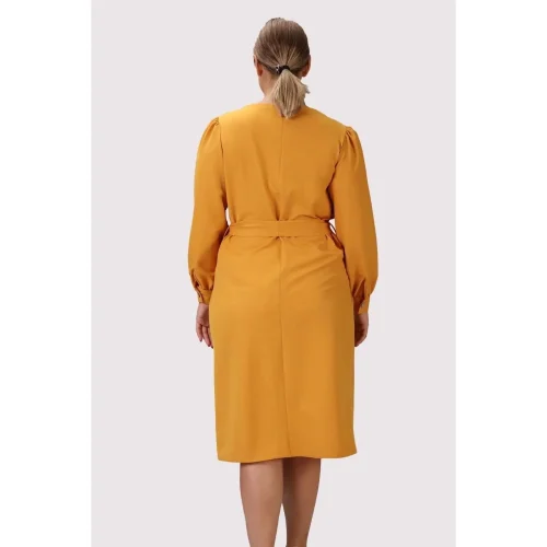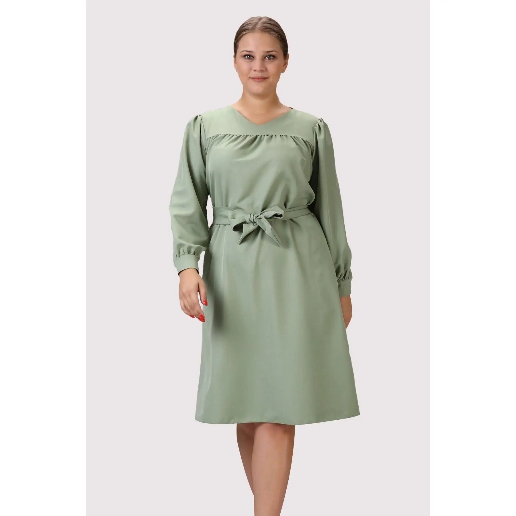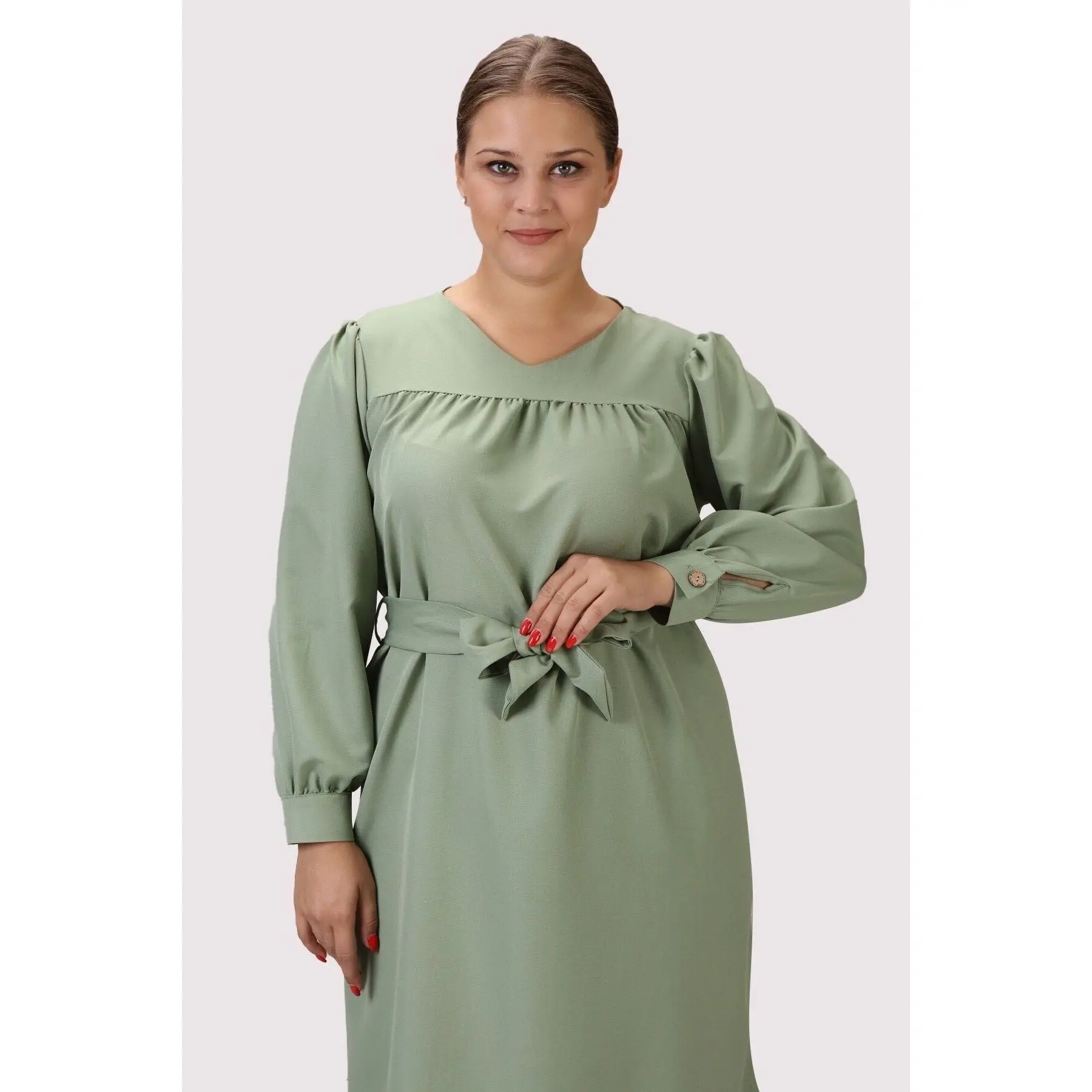 Product Name: Women’s Linen Casual V Neck Midi Dress Long Sleeve Detailed Gathered Cuff Plus Size 4409/110 Sexy Casual Wear