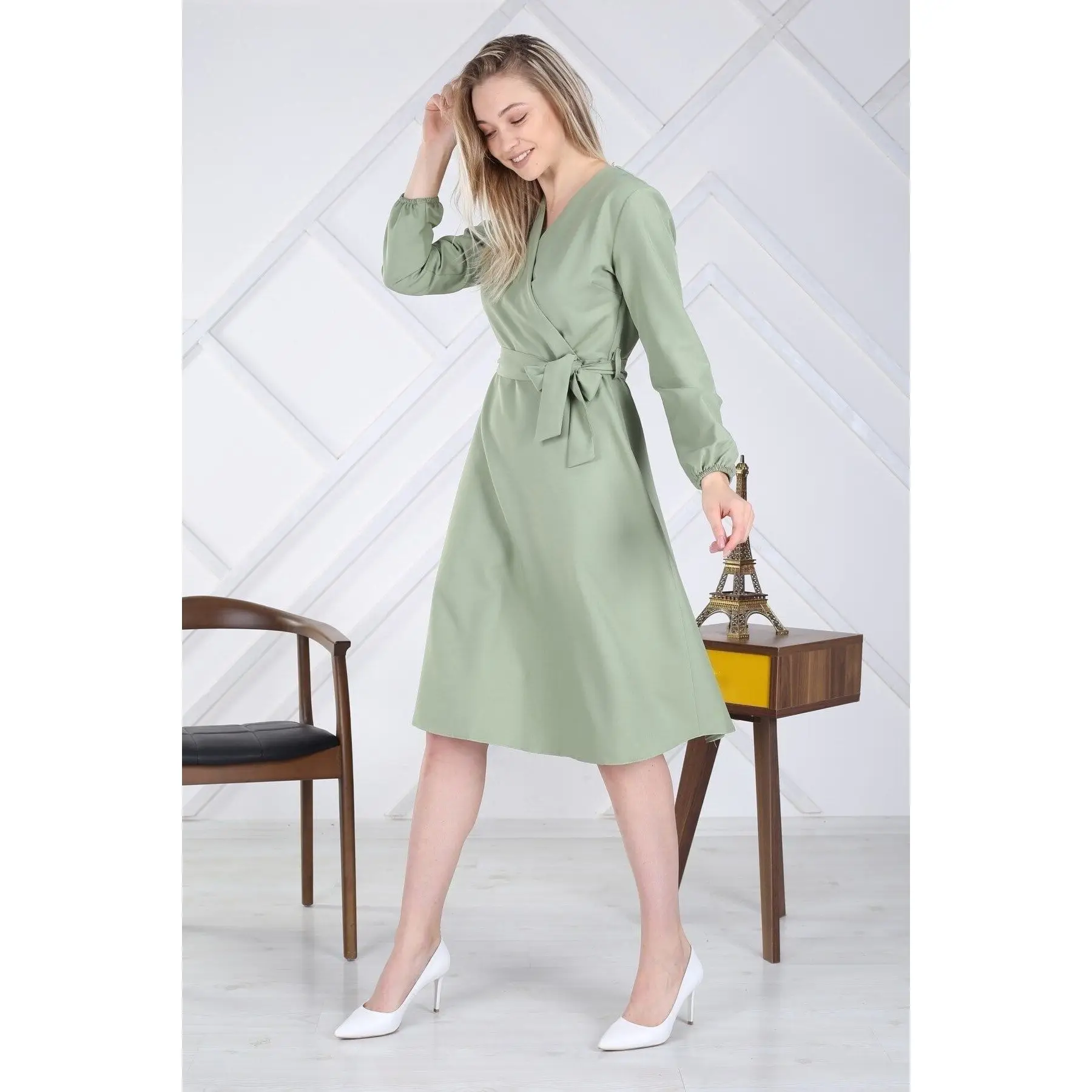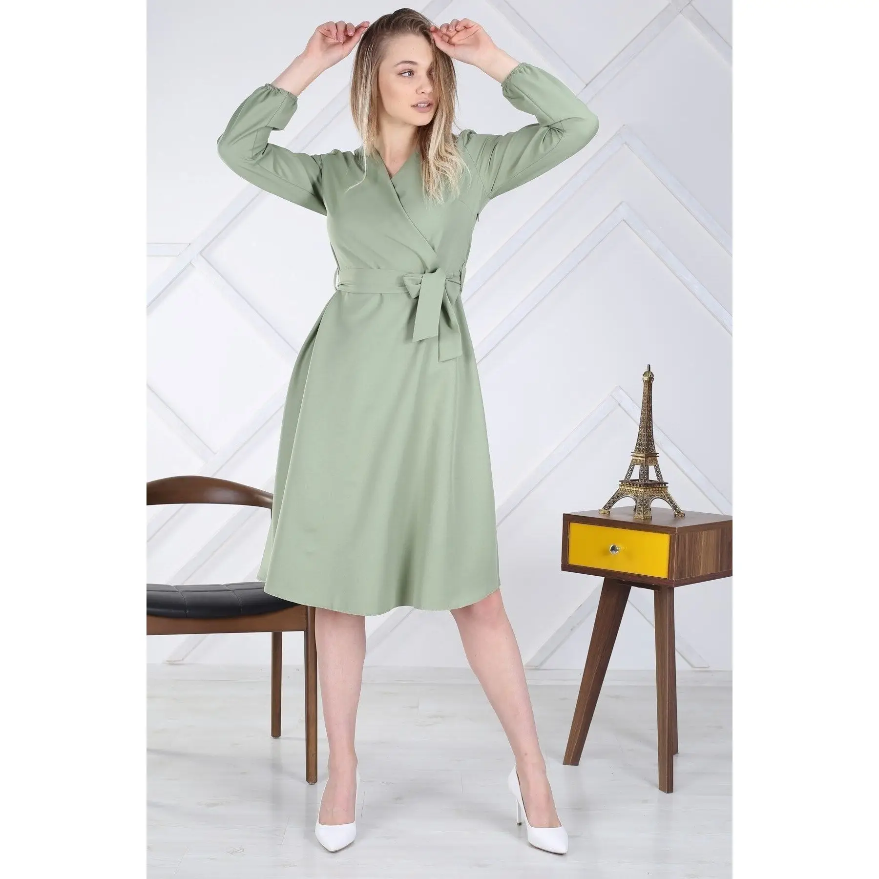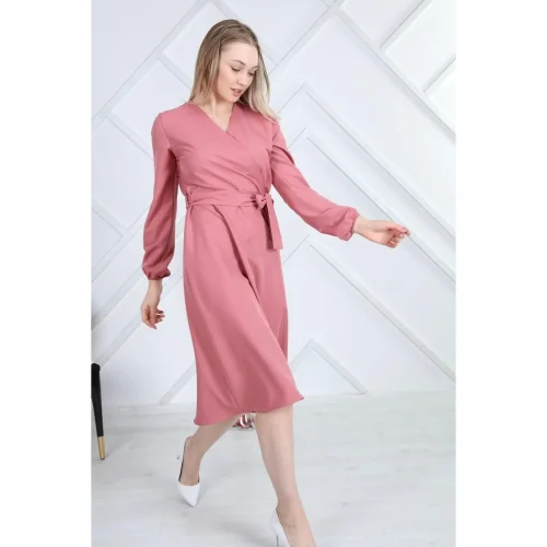 Women’s Premium Quality Midi Length Dress 4338/110 Double Breasted Tie Detail XL Plus Sexy Casual Wear Turkish Manufacturer
