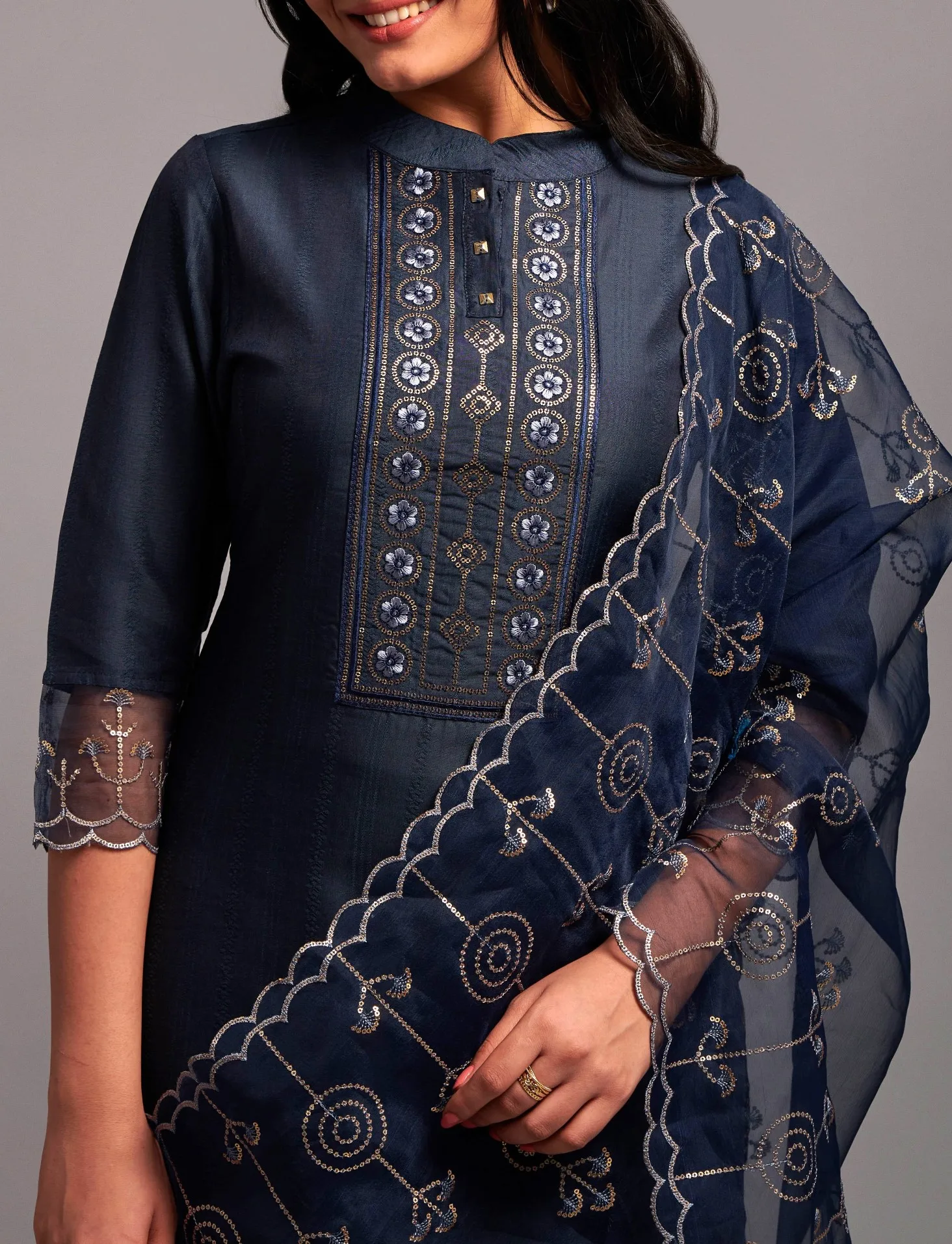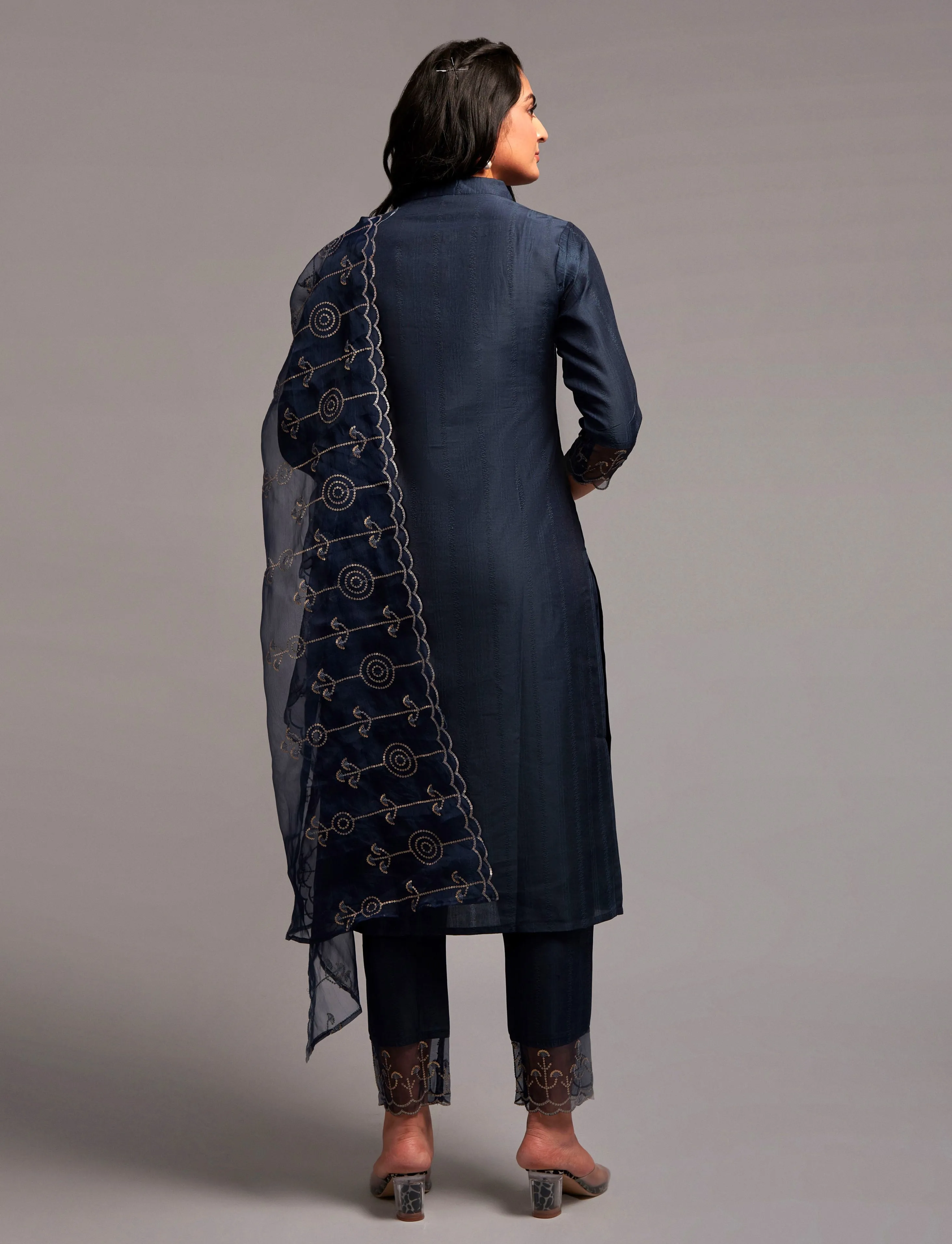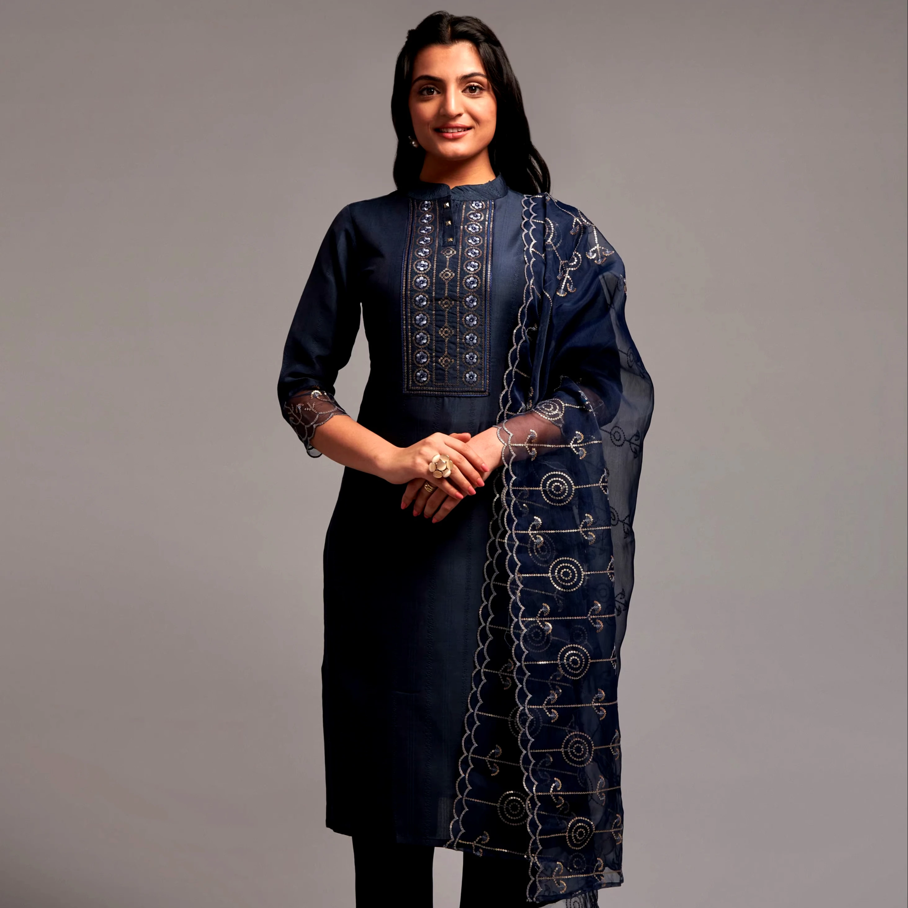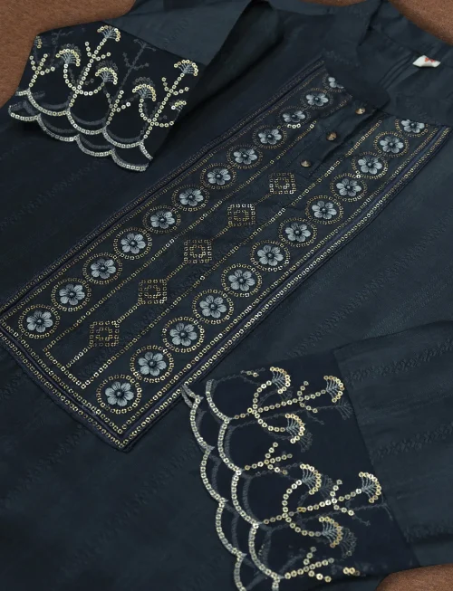 Product Name: Women’s Sequence Embroidered Silk Kurta Set with Pant Dupatta Long Pakistani Style Rayon Dress Casual Party Occasions Stitched