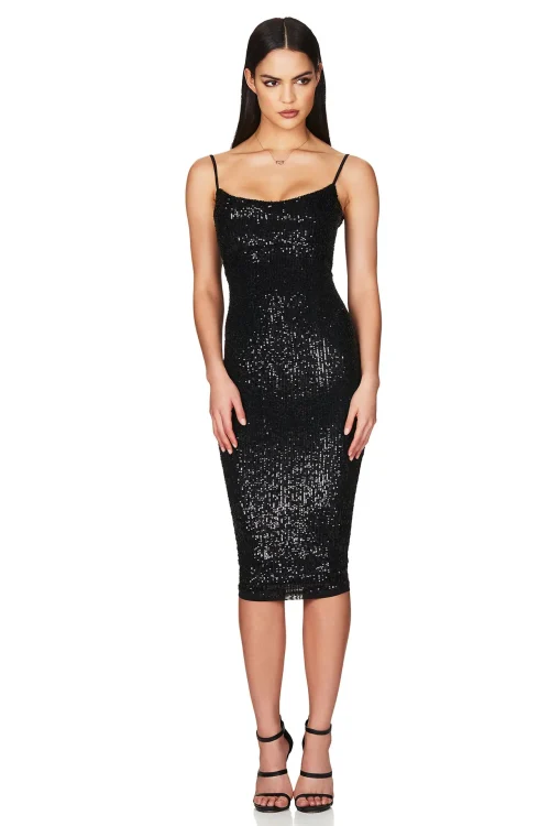 Women’s Sexy Bobycon Shinning Beading Slip Dress Eco-Friendly Club Party Evening Clothing with Sequined Decoration