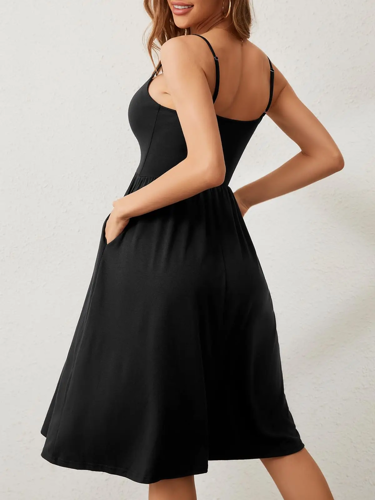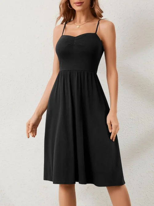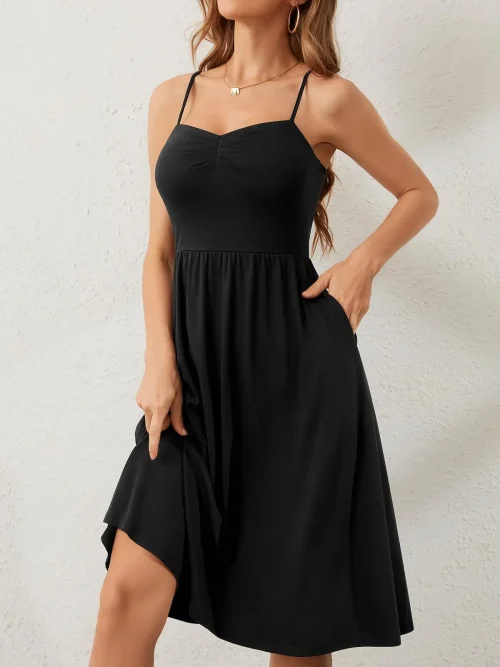 Product Name: Women’s Sleeveless Spaghetti Strap Bamboo Spandex Casual Midi Sundress Pockets Beach Winter Use Featuring Unique Patterns