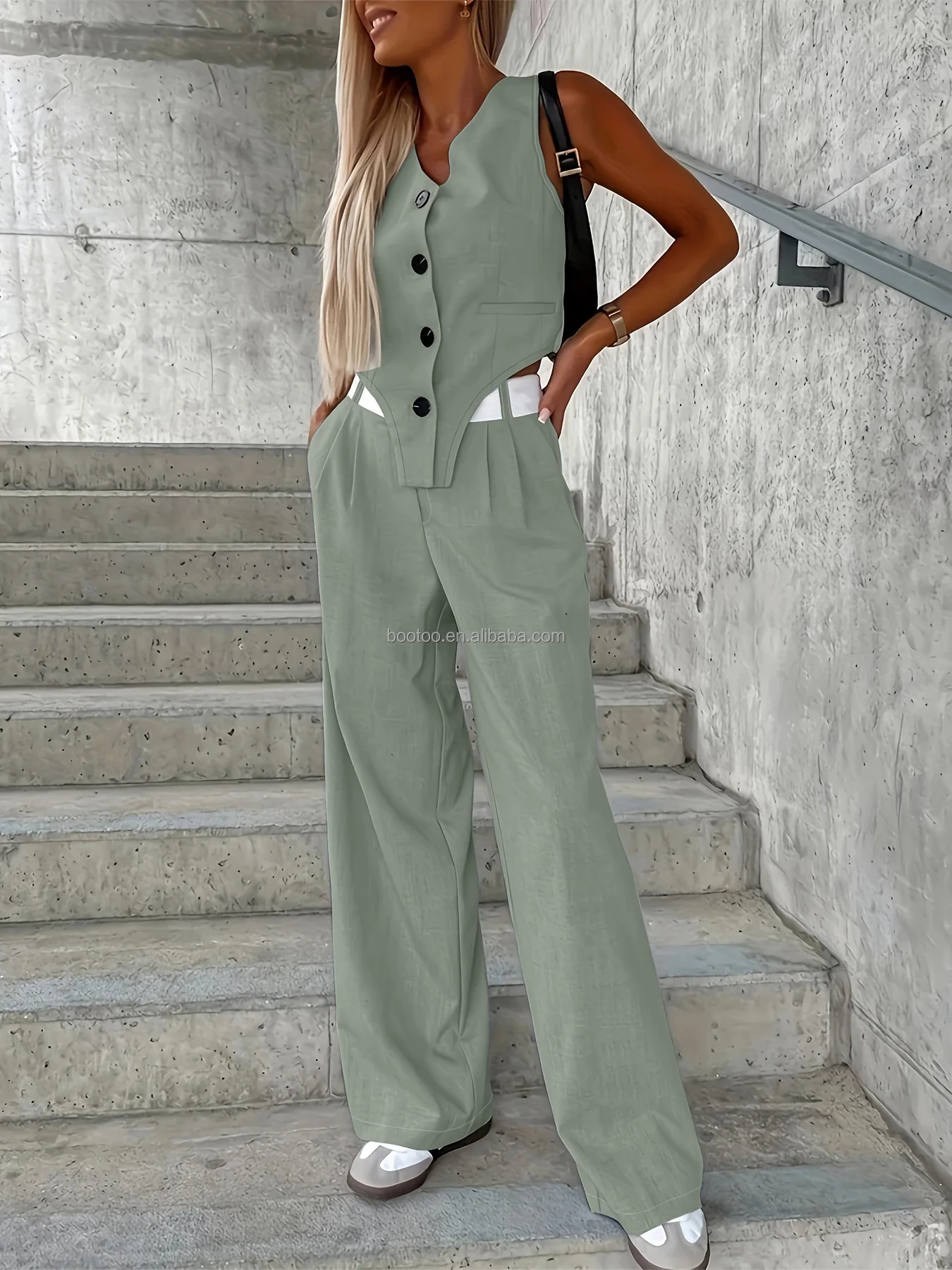 Product Name: Women’s Summer Casual V-Neck Vest Suit Solid Pattern Short Sleeveless Tops with Button Decoration Loose Fit Club Dress