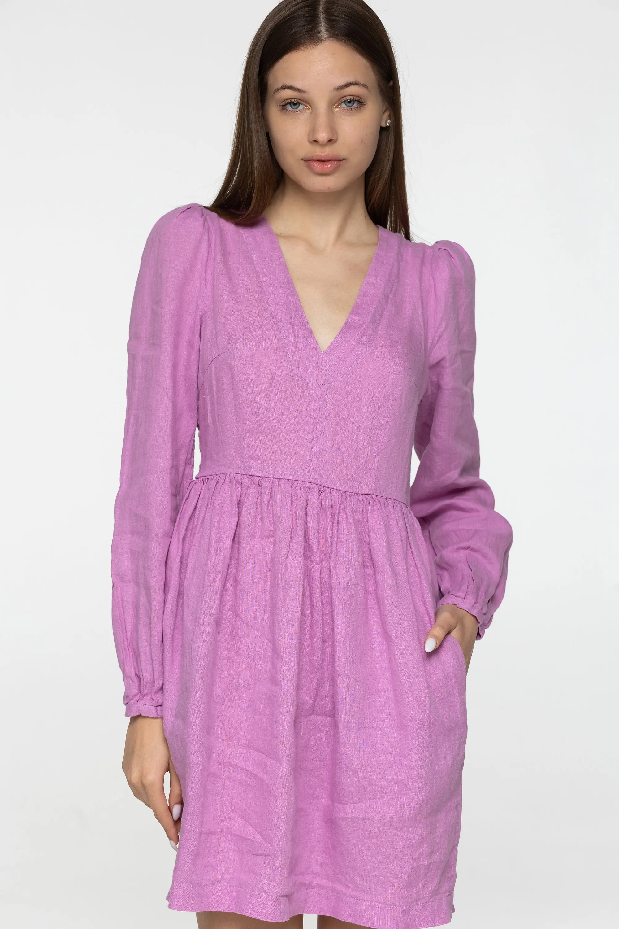 Product Name: Women’s Summer Clothes Short Dress Long Sleeve Casual Style Linen Dress With Pockets Linen V Neck Long Lantern Sleeves