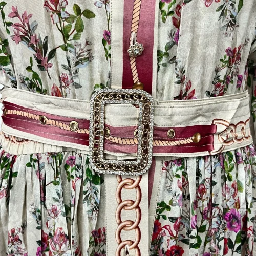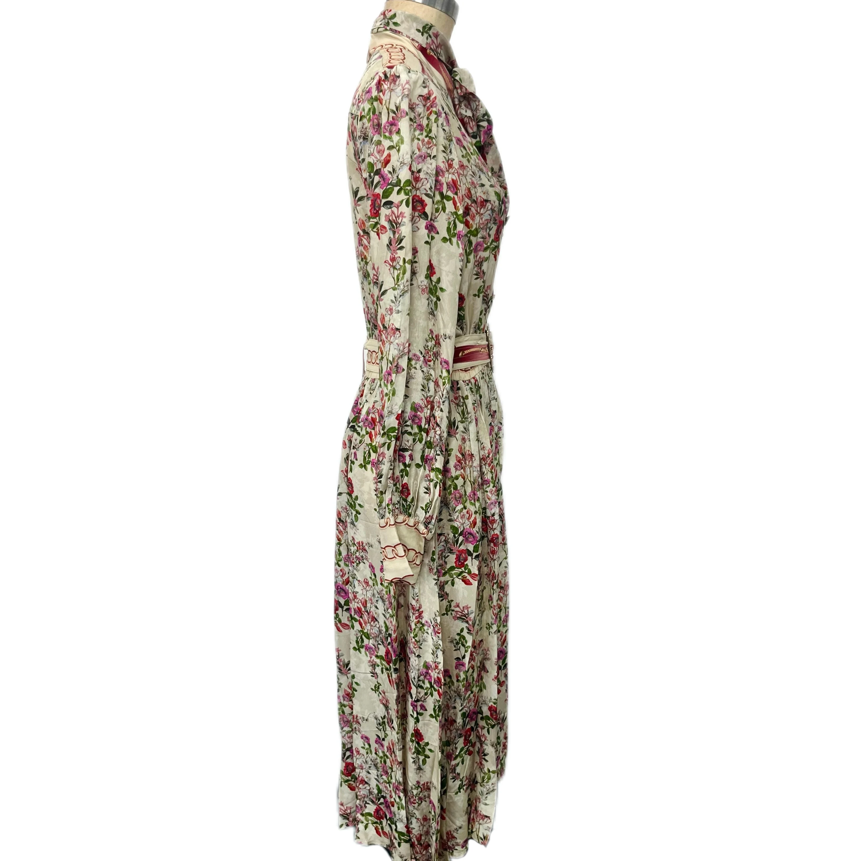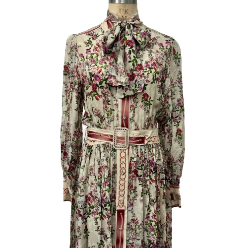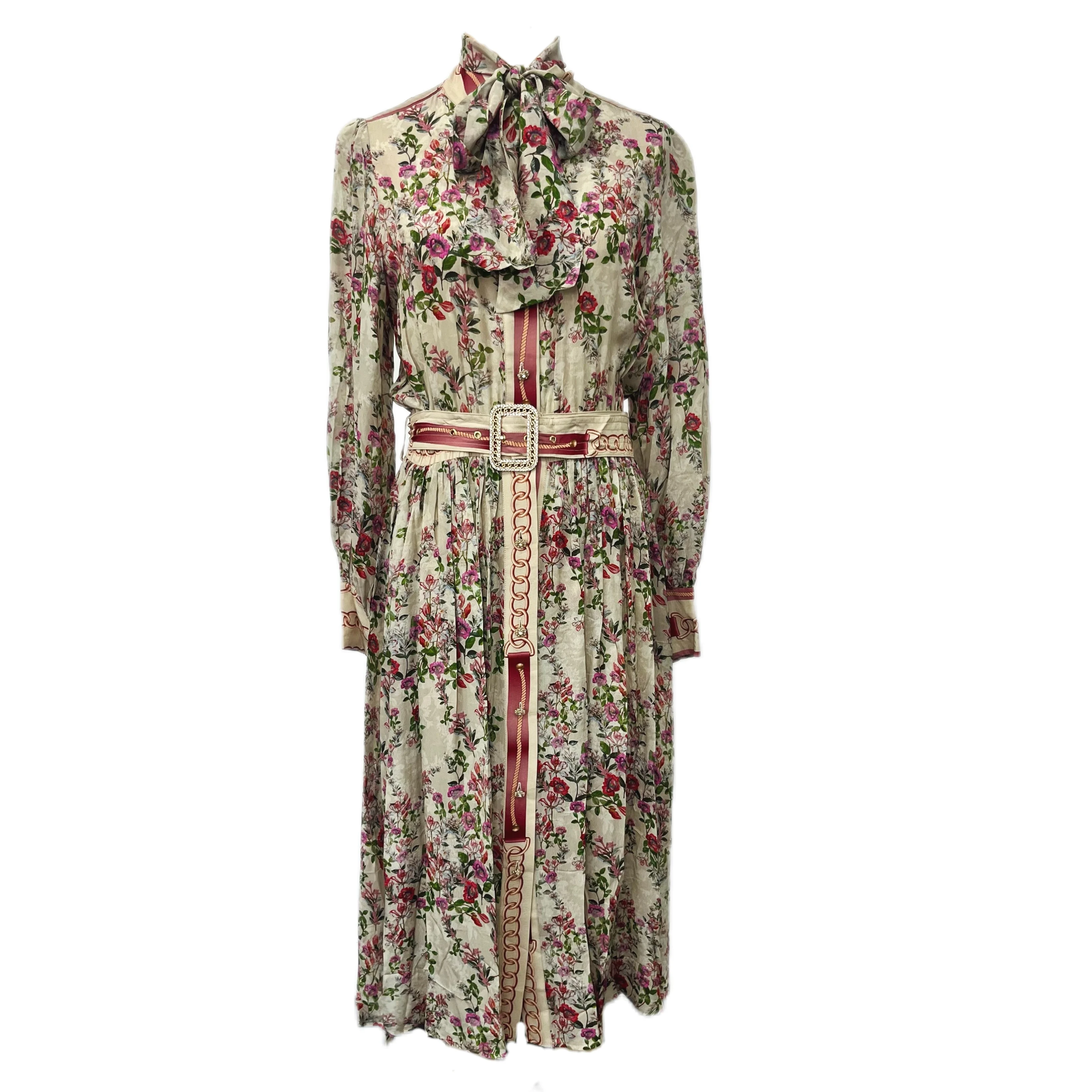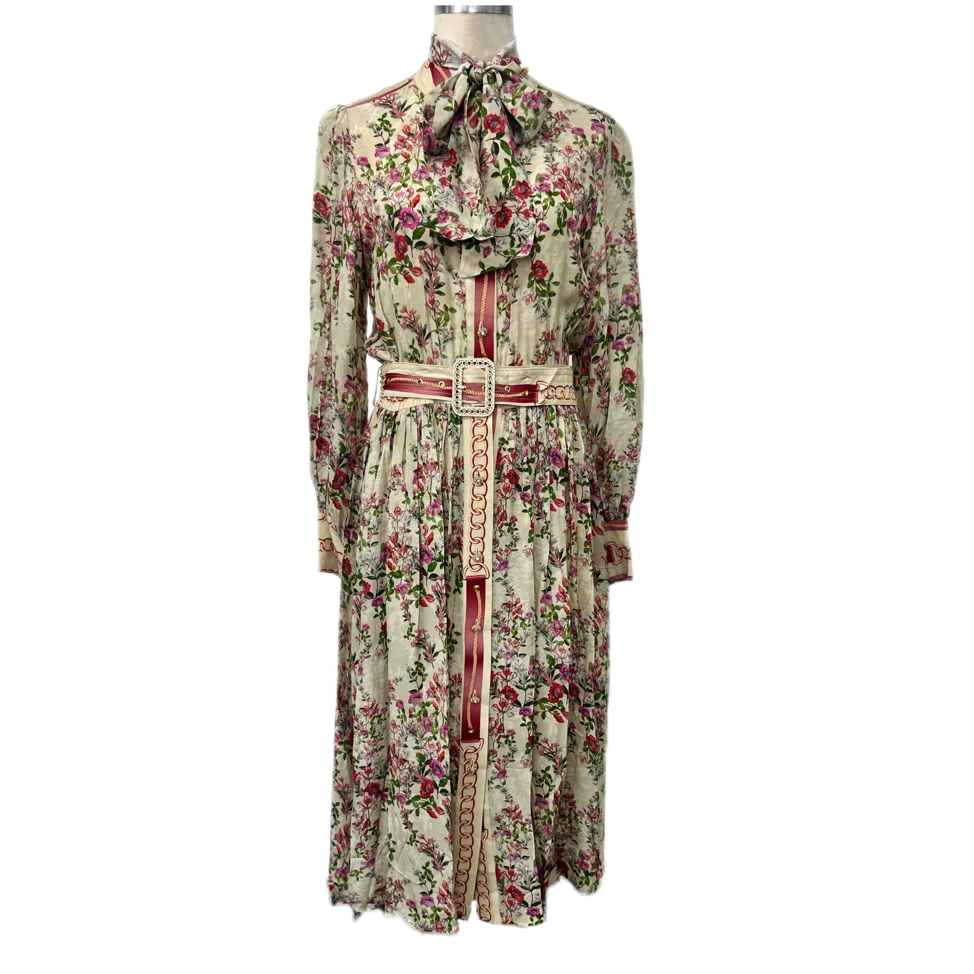 Product Name: Women’s Vintage Floral Chiffon Dress With Lantern Sleeves Single-Breasted Waist Strap Design Sensing Casual Dress Temperament