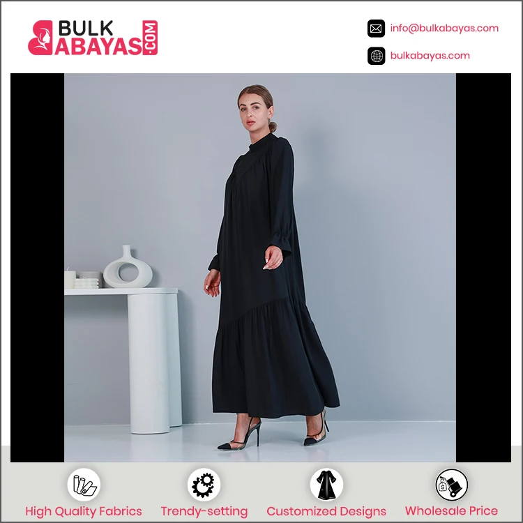 Product Name: World’s Best Indian Manufacturer of Top Quality Muslim Dress Black Color Abaya with Pleated Work on Front and Back