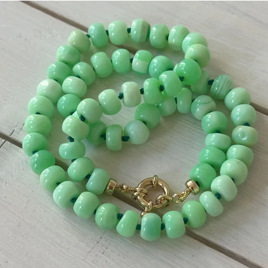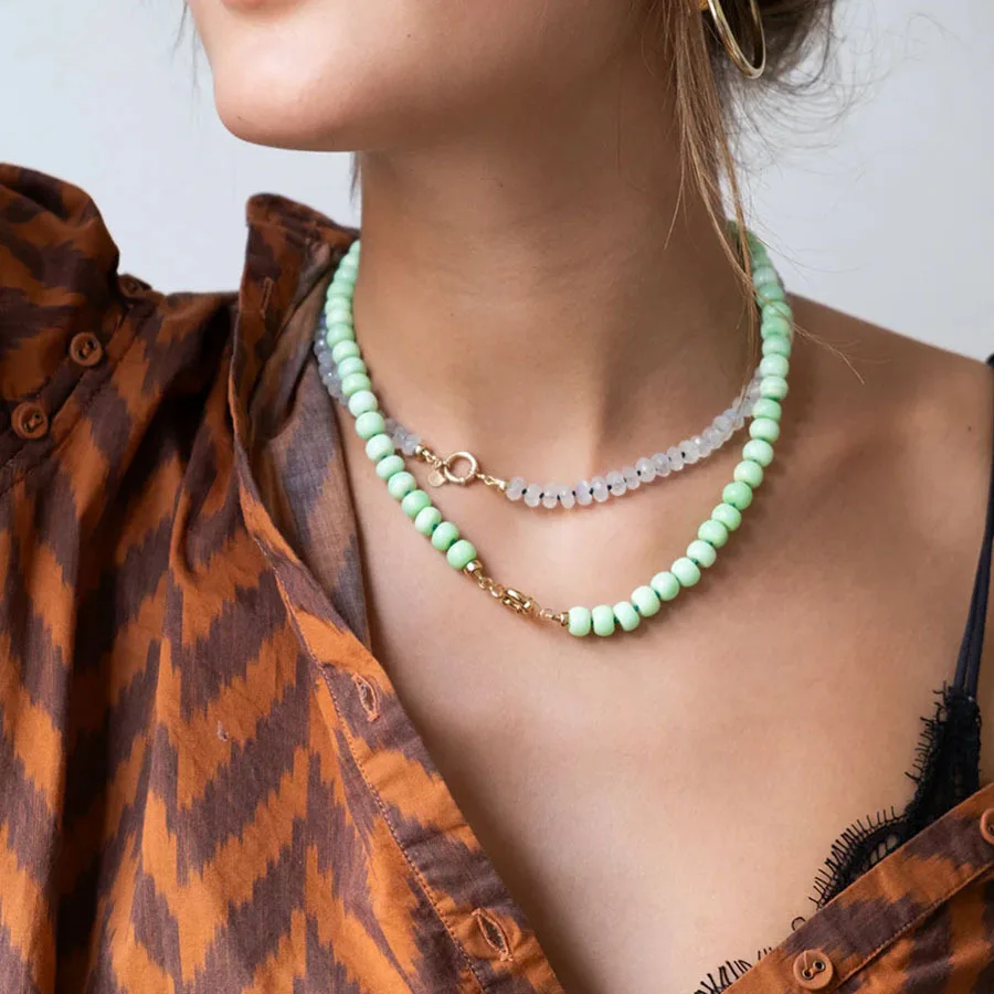 Product Name: Woying – High-quality Bohemian Stainless Steel Turquoise Colored Natural Stone Bead Necklace for Women