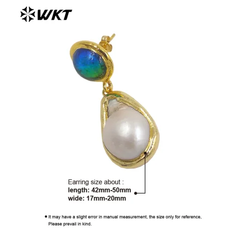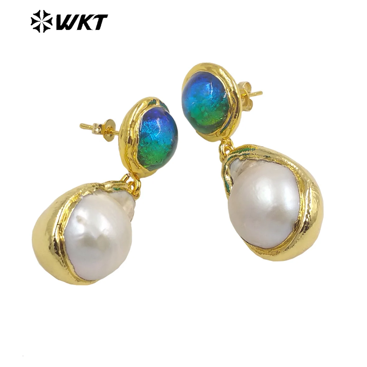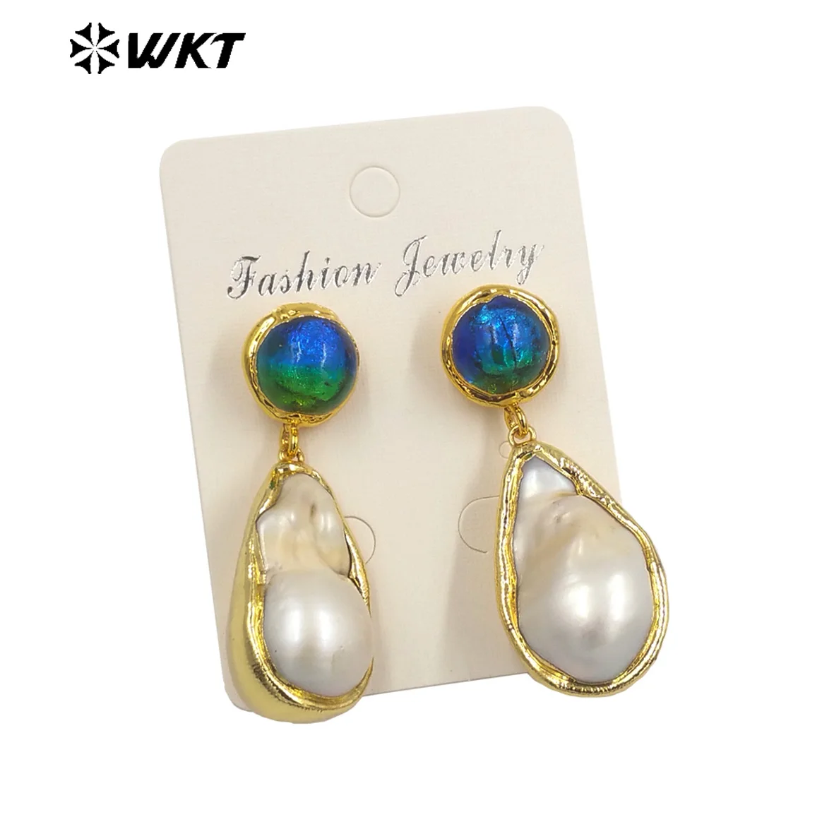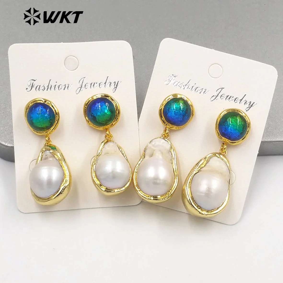 Product Name: WT-MPE097 Baroque Pearl&Colour Glaze Romantic Fashion Gift for Lady 18k Gold Trendy Gemstone Jewelry Pendant Weeding Earrings