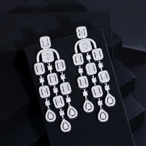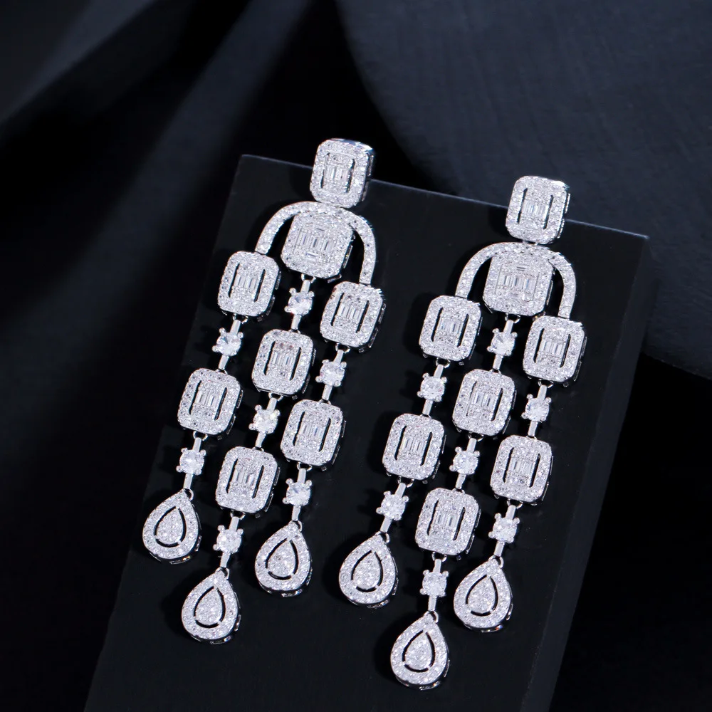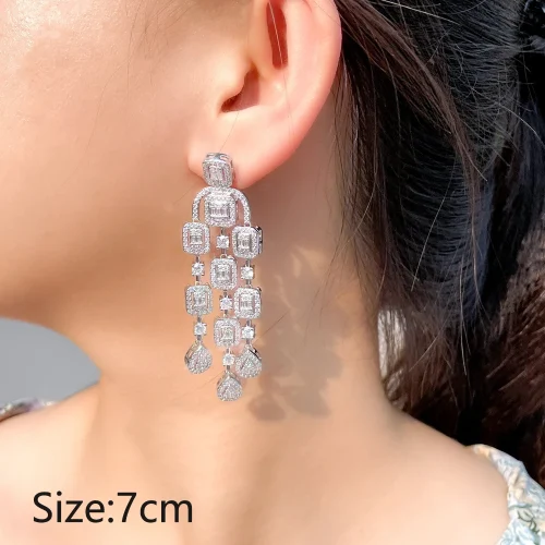 Product Name: XILIANGFEIZI High Cross-border European and American Exaggerated Tassel Zircon Earrings S925 Silver Needle Fashion Full Diamond