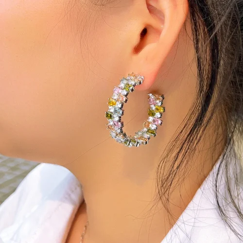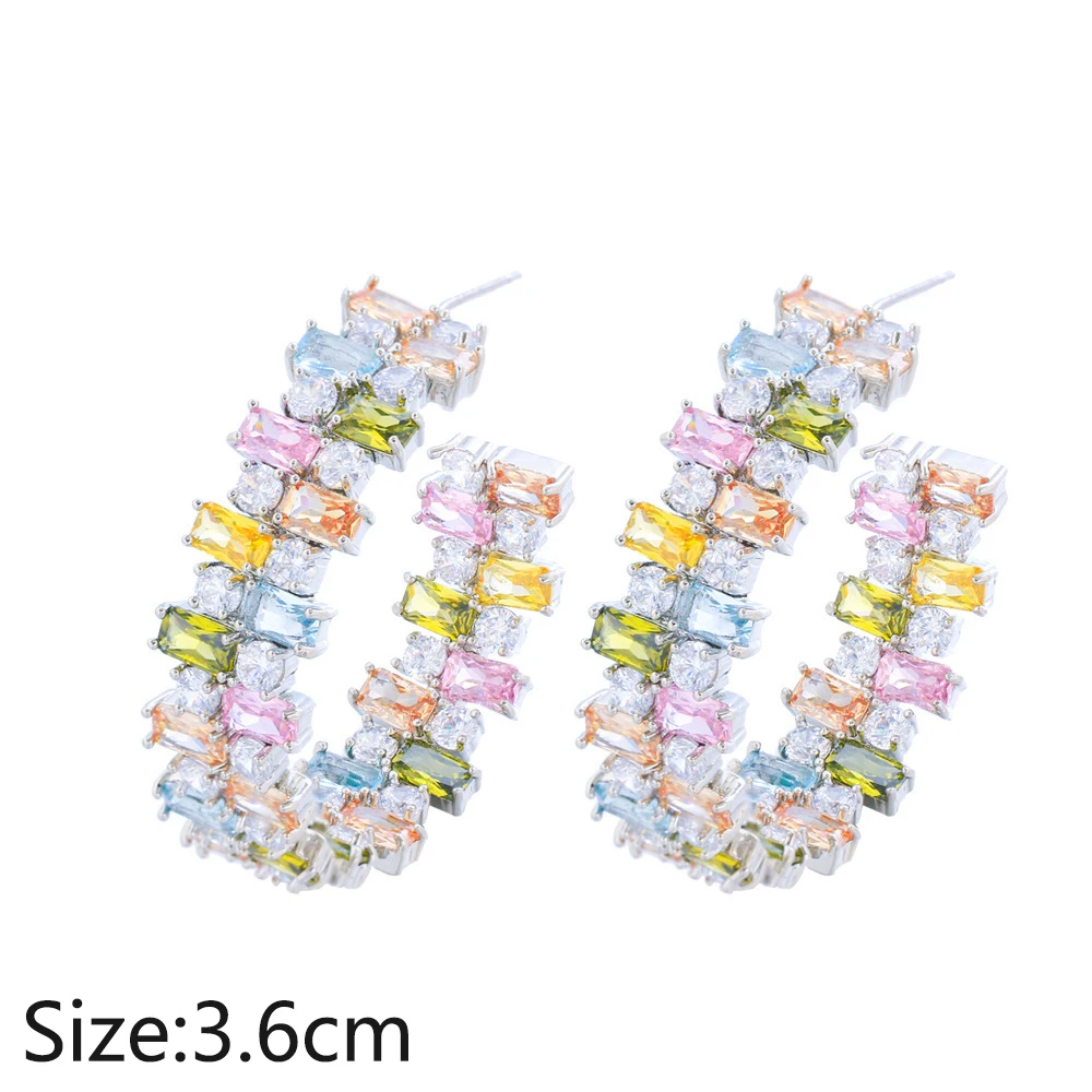 Product Name: XILIANGFEIZI S925 Silver Needle Heavy Industry Colored C-ring Earrings, Candy square Zircon Irregular Colored Diamond Earrings