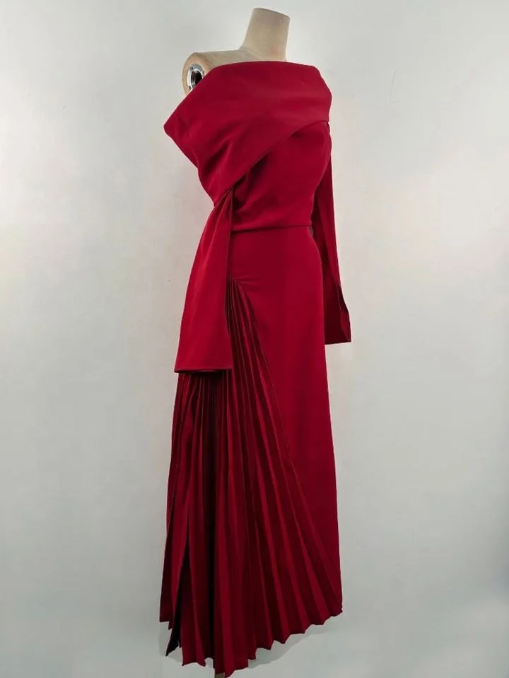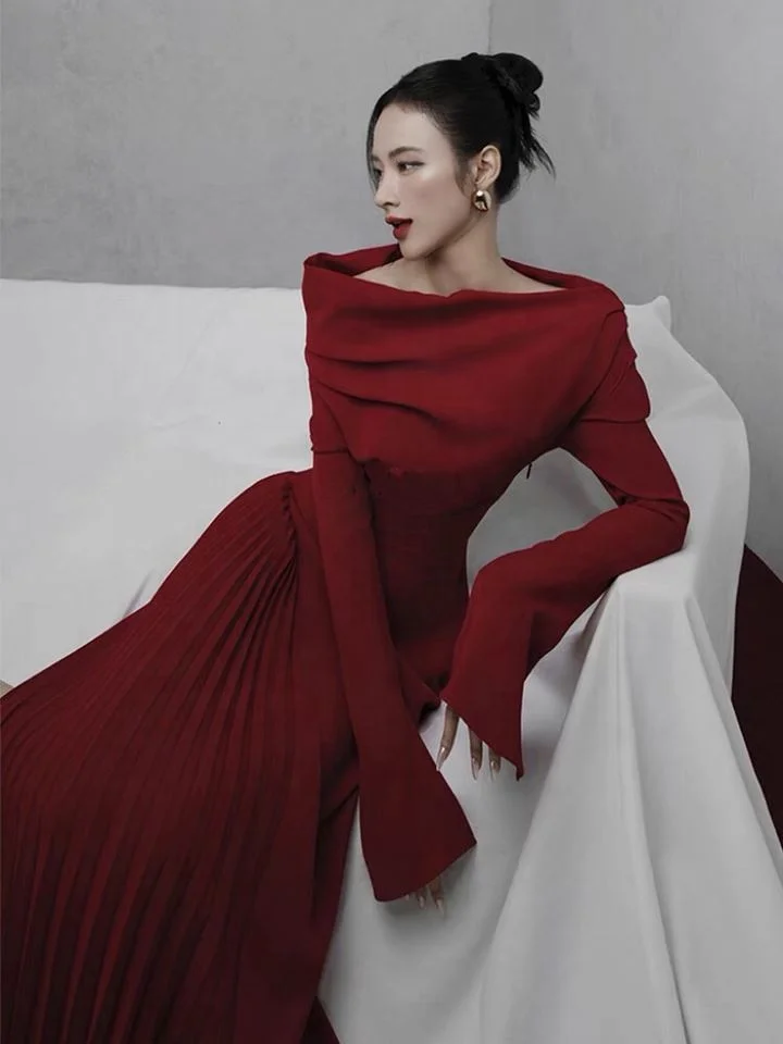 Product Name: YC 2025 Autumn New Women’s Elegant Dress Ankle-Length Slim High Waist Side Slit Diagonal Collar Pleated Casual Solid