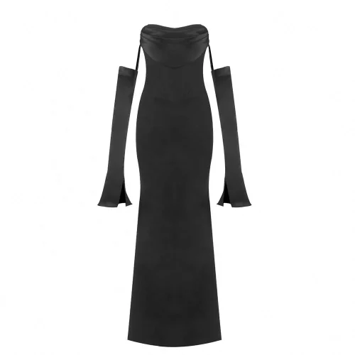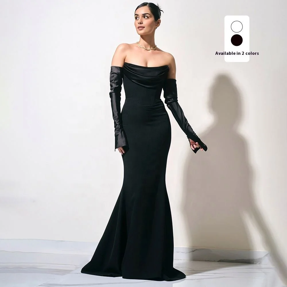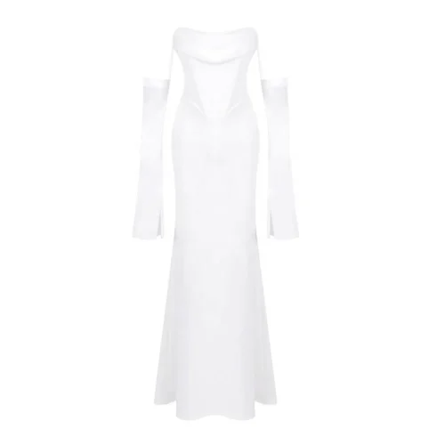 Product Name: YC New Arrival Women’s Casual Solid Chiffon Long-Sleeved Off-Shoulder Dress Slimming Stretch Black White for Day Summer