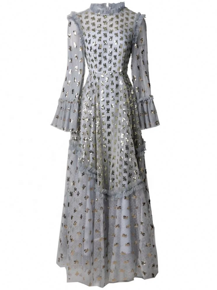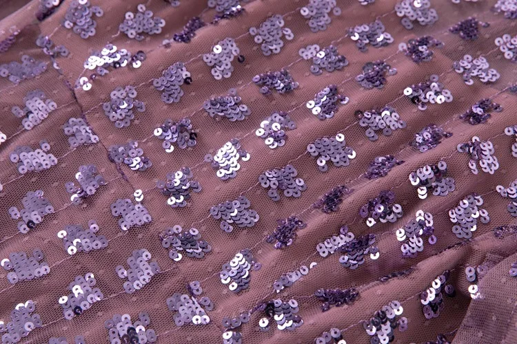 Product Name: YC Women’s O-Neck Flare Sleeve Sequins Embroidery Mesh Purple Ball Gown Long Dresses Fashion Spring New