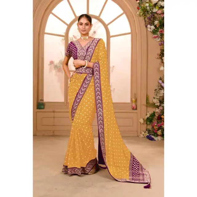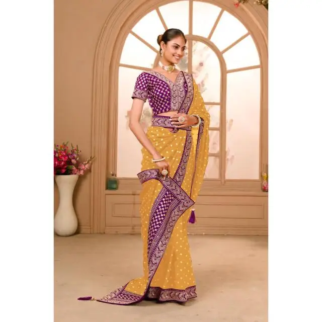 Product Name: Zariwork Designer Saree Zari Sequence Work Designer Saree With Blouse Pre Stitched Pleated Easy Drape Saree