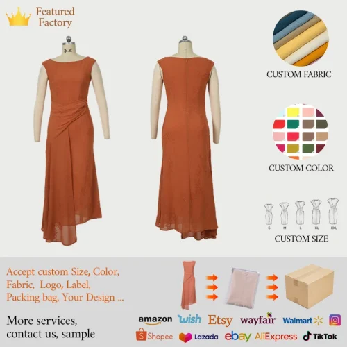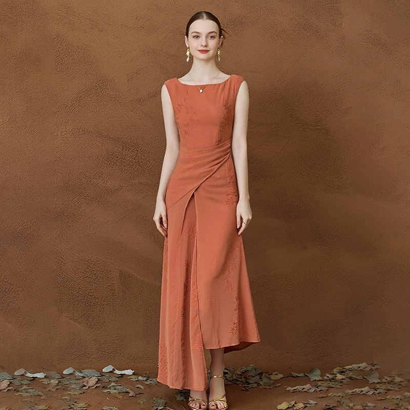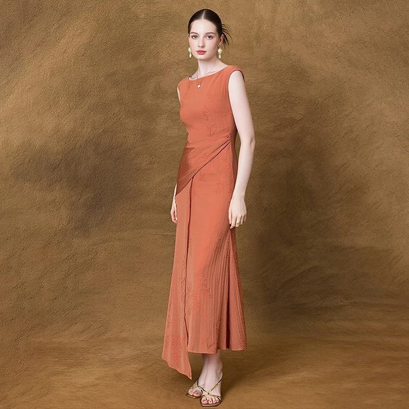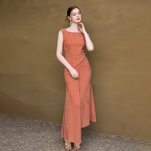 ZTHT 15168 2025 Summer New Women’s Crew Neck Summer Elegant Casual Sleeveless Stock Fishtail Long Dress Female