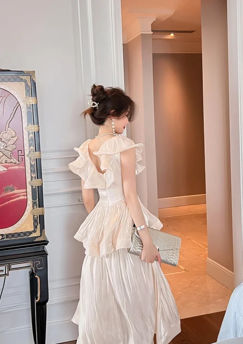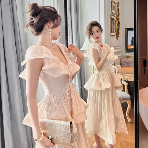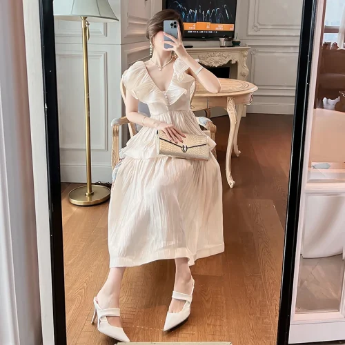 ZYHT 5919 High Quality Yarn Satin V Neck a Line Holiday Party Casual Women Lady Elegant Maxi Dress