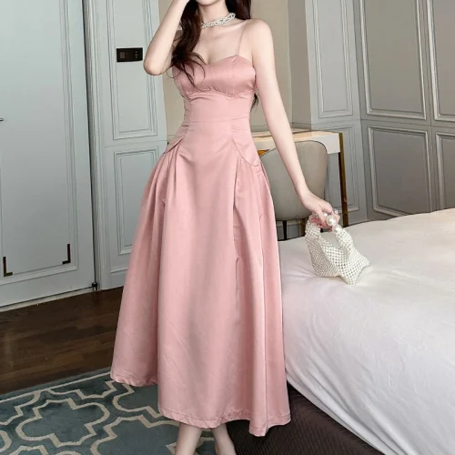 ZYHT 6035 Tank Sleeveless Backless Casual Summer Puffy Sexy Satin Sun Dresses for Women
