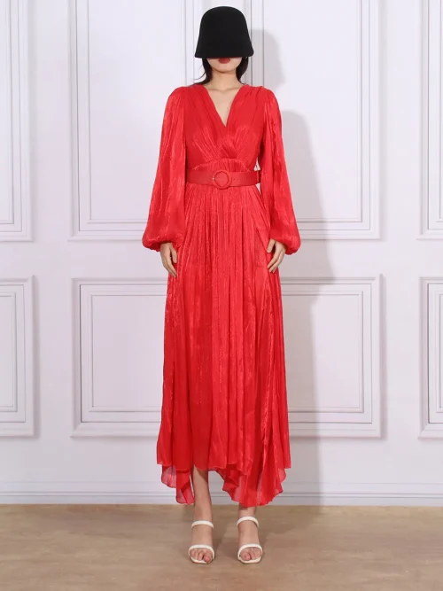 2023 New Simple Temperament Spilt Design Dress DesignSense Long Sleeve Slimming Maxi Elegant Women Dress