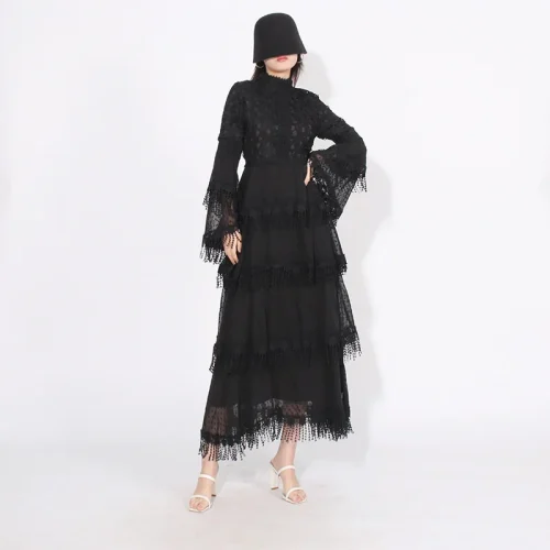 2023 New Arrival Temperament Lace Patchwork Design Women Dress Slimming Waist Maxi Lady Dress