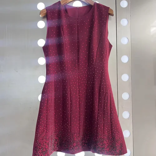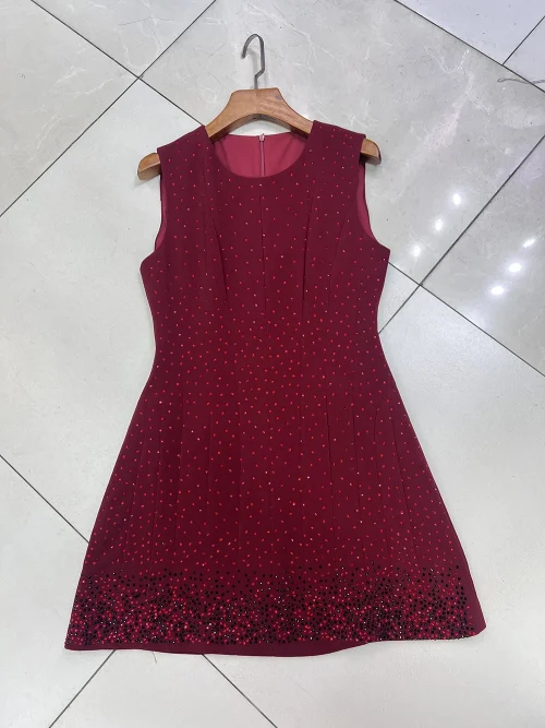 2025 Summer Spring Vest Mini Dress New Fashion Design Women Runway High Street A-Line Diamonds Red Office Lady Sleeveless
