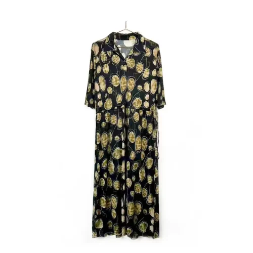 2025 Summer New Europe and the United States Big Black and White Color Shirt Skirt Split Buttock Short-sleeved Casual Dress