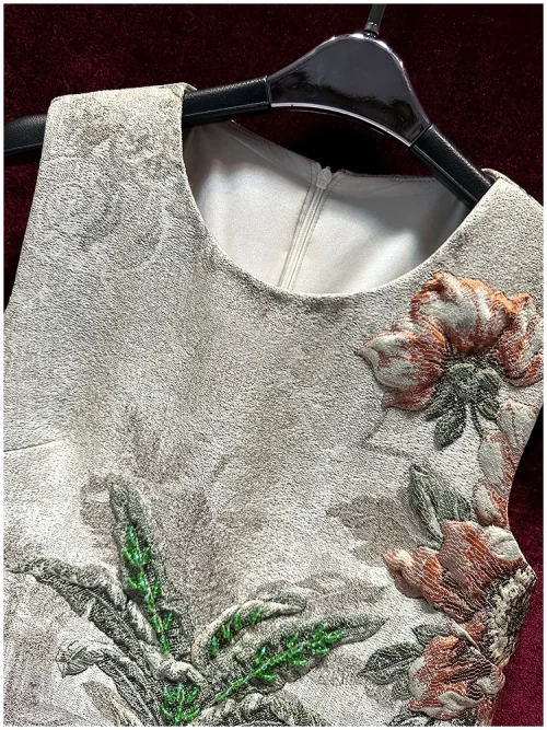 2025 Summer Retro Chinese Style High-End Women’s Sleeveless Vest Dress Casual New Style Natural Washable Beading Niche Lace