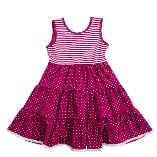 Baby Girls Knit Cotton Twirl Dress Stripes Bodice Polka Dot Scoop Back Tiered Sleeveless Dresses for 2-10 Years Little Girls