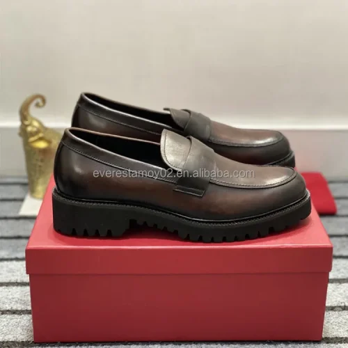 B09 Retro Suede Genuine Leather Chunky Casual Walking Style Dangaroo Boot Dress Loafers Derby Shoes Men