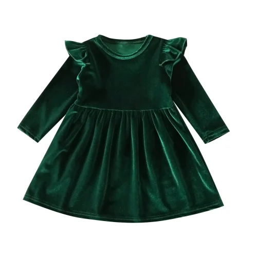 Baby Girls Wear Vintage Solid Color Velvet Twirl Dresses Long Sleeve Round Neck Designs a Line Dresses