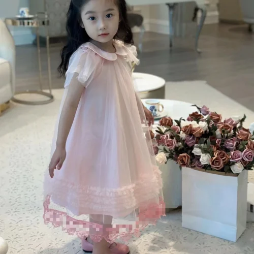 New Arrive Flower Girl Dress High Quality Baby Girls Casual Elegant Summer Short Sleeve Children Casual Dresses Style