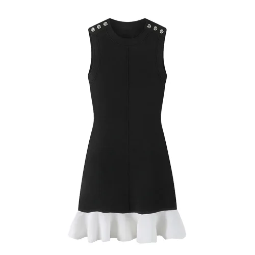 New Beaded Shell Hollow Sexy Sling Dress Solid Pattern Casual Style Summer Midi Dyed Front Washable