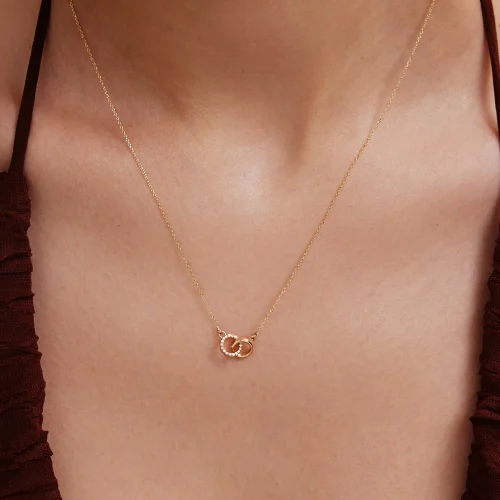 18k Gold Diamond Interwined Circle Necklace Sterling Silver Jewelry Designer Necklace Fashionable Trendy Hip Hop Necklace