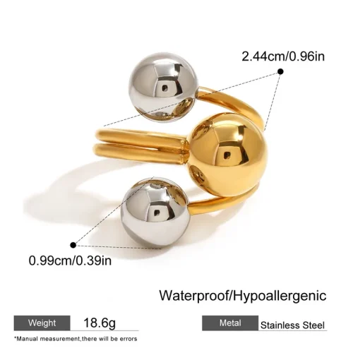 18k Gold Stainless Steel Gold Silver Color Matching Three-Layer Line Color Matching Sphere Opening Ring Trendy Jewelry