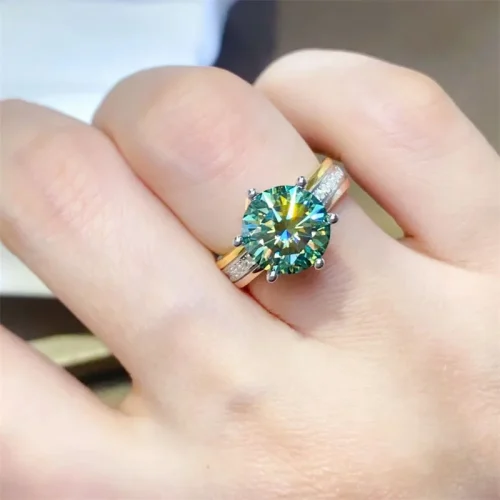 18K Gold Ring for Ladies 3 Carat Green Moissanite Diamond S925 Silver Plated Luxury for Anniversary