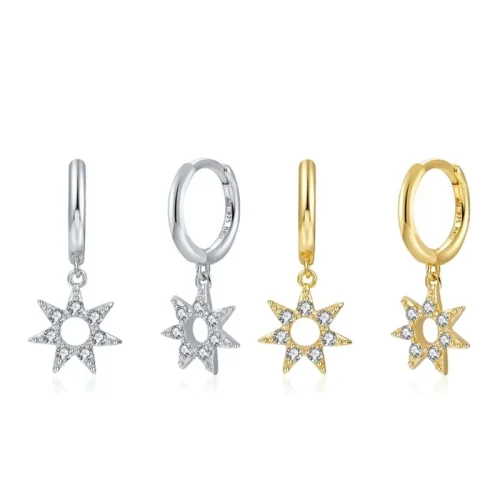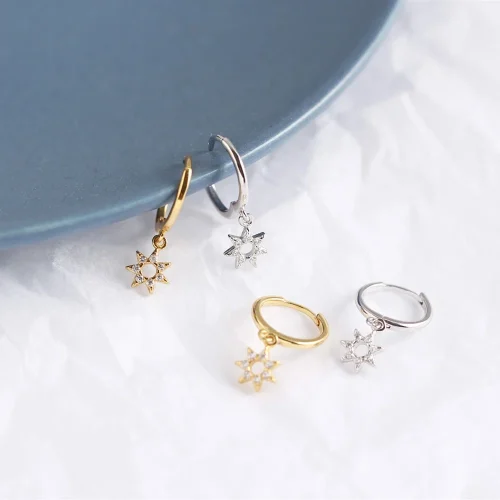 2022 Trend NEW Simple 925 Sterling Silver 18k Gold Plated Sunflower Pave Setting Cz huggies Dangle Hoop Earrings for Women