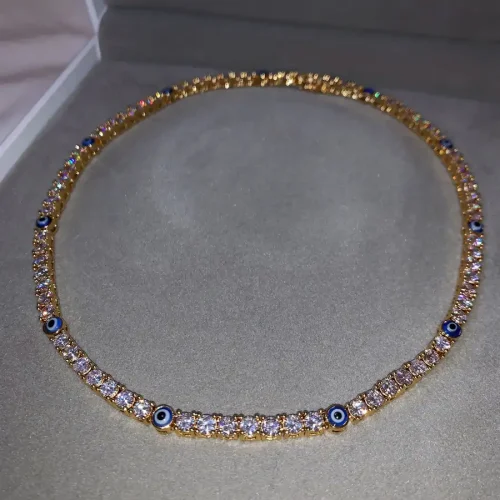 2022 New Lucky Turkish Evil Eye Jewelry 5A Iced Out Bling CZ Tennis Chain Choker Necklace 16″