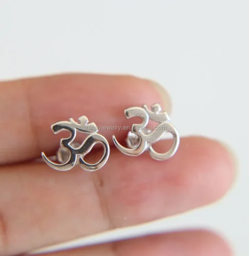 2023 High Quality Polished 10mm Yoga Jewelry Om Studs Earring for Women Gold Silver Plated