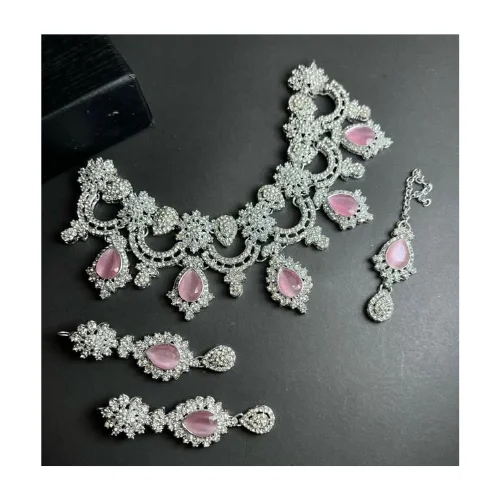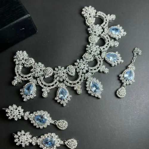 2024 Jewelry Sets Women American Diamond Style Choker Necklaces Earrings Mang Tikka Indian Wedding Bridal Jewelry Sets