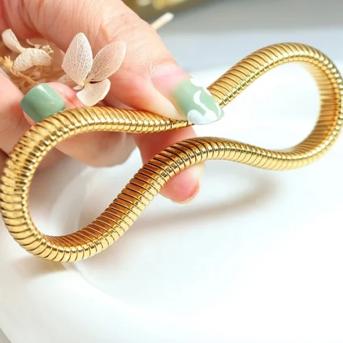 2023 Waterproof Stainless Steel Elasticity Snake Chain Bracelet Chunky 18k Gold Plated Wide Adjustable Bangle Women Jewelry