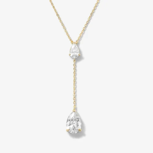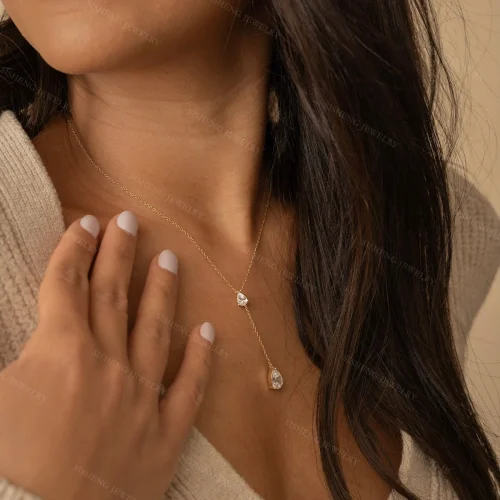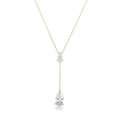 925 Sterling Silver Women Jewelry Gold Plated Pear Drop CZ Pendant Lariat Y Necklace
