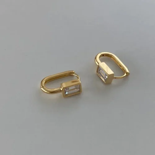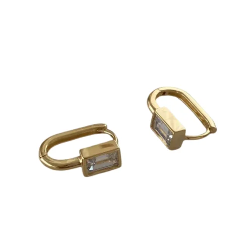 925 Sterling Silver Women Jewelry Princess CZ Cubic Zirconia Huggie Earrings
