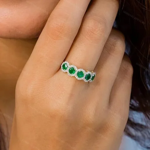 925 Sterling Silver Women Jewelry Gold Plated Emerald Diamond CZ Band Ring