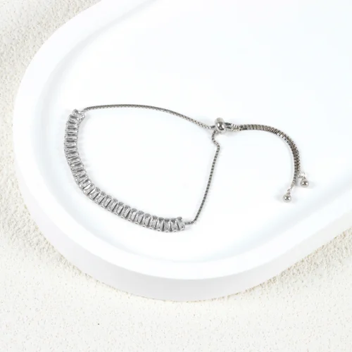 Adjustable Full Zircon Bracelet Pull Handle Decorated Tennis Chain Bracelet for Women 925 Silver Jewelry Set