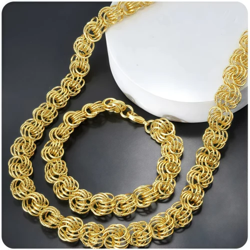 Adjustable Gold Plated Hip Hop Jewelry Set Women Men Stainless Steel Chain Bracelet Necklace Jewelry Set High Quality