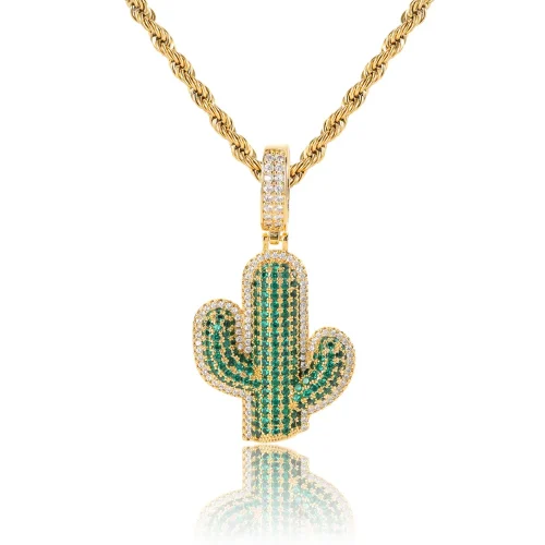 AIZL Bohemian Green Zircon Cactus Pendant Personalized Reason Energy Necklace with Rope Chain Brass Jewelry for Party Occasions