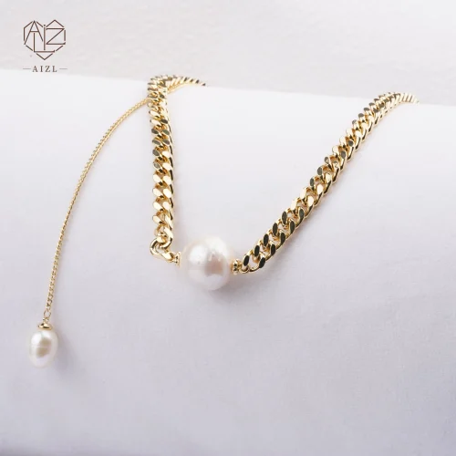 AIZL Baroque Freshwater Pearl Chain Light Luxury Ins Wind High-end Sense Copper love Pendant Inlaid Zircon Necklace Female