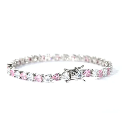 Aivenchy Fashionable Brass Zircon Couple Tennis Chains Pink Romantic Heart Zircon CZ Ladies Fashion Bracelets