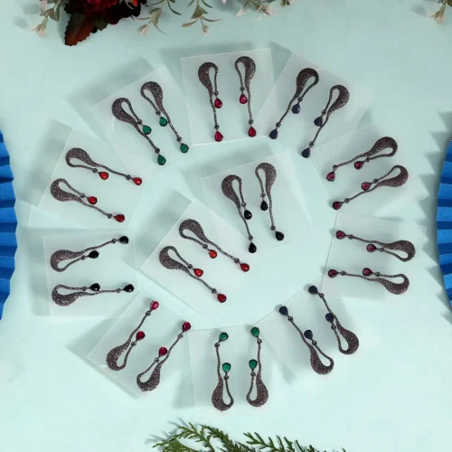 Assorted Color Antique Stone Earrings Combo Of 16 Pairs (ANTE555CMB)