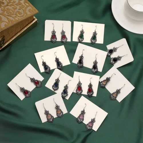 Assorted Color Antique Stone Earrings Combo Of 14 Pairs (ANTE556CMB)