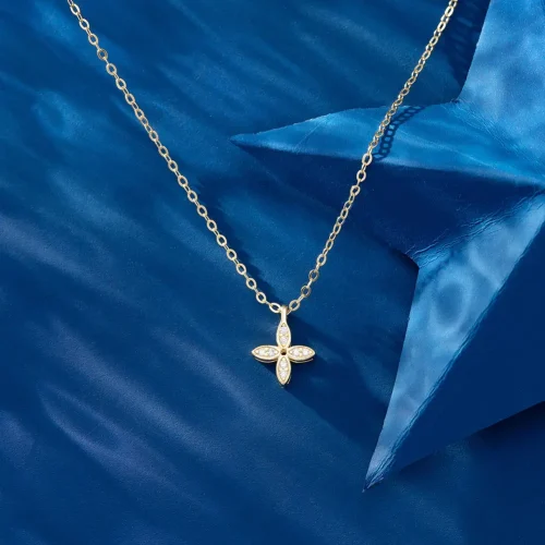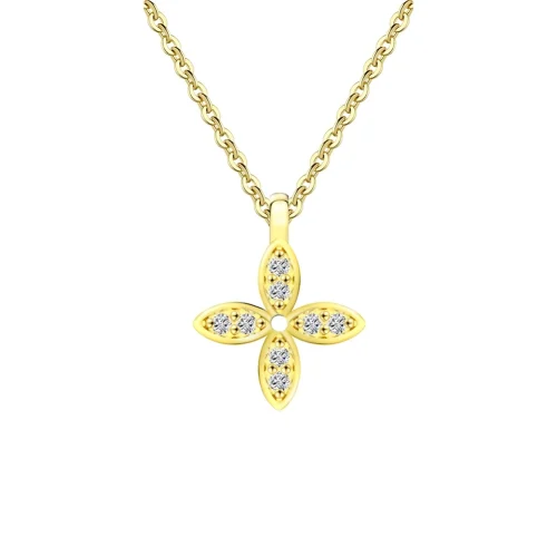 APN26 RINNTIN Valentine Gift Fine Jewelry 925 Sterling Silver 14K Gold Plated Four Leaf Clover Necklace for Women